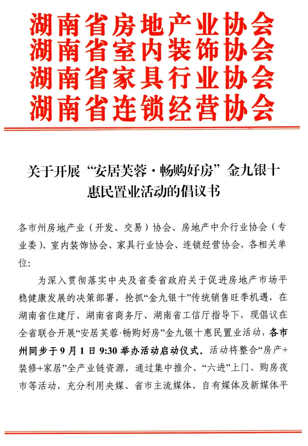 關于開展“安居芙蓉·暢購好房”金九銀十惠民置業(yè)活動的倡議書